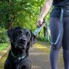 - Absorbs the shock of the pulling dog and reduces the strain on the owners shoulders and arms, and the dogs neck and throat.