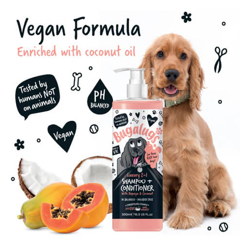 Our Luxury 2 in 1 Dog Shampoo and Conditioner is no different. Packed with papaya and coconut that leaves the coat with a long-lasting and irresistible tropical fragrance, our Bugalugs 2 in 1 ensures your dog has luxurious lather at bath time every time.