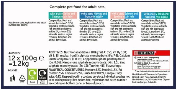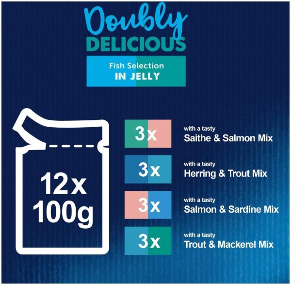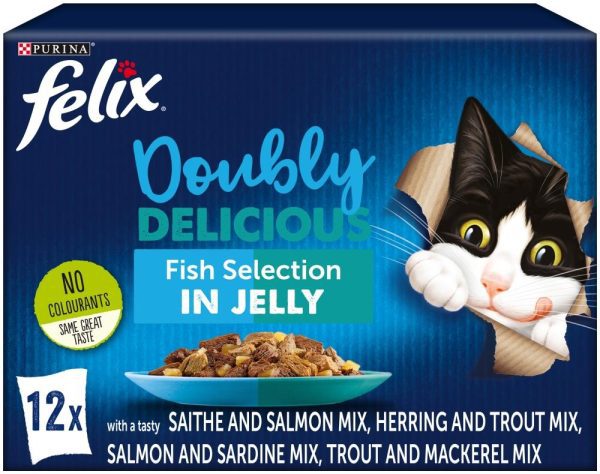 Treat your cat to a mouth-watering fishy feast with our FELIX As Good As It Looks Doubly Delicious Adult Cat Fish Selection in Jelly! With a variety of salmon and sardine, trout and mackerel, saithe and salmon and hisring and trout, your cat will be spoilt for choice! The perfect selection for fish-loving felines, FELIX As Good As It Looks Doubly Delicious Adult Cat Fish Selection in Jelly is packed with essential nutrients and key ingredients to keep your adult cat happy and active. Watch his enjoy a delicious pouch, available in 100g individual servings to make a meal in minutes!