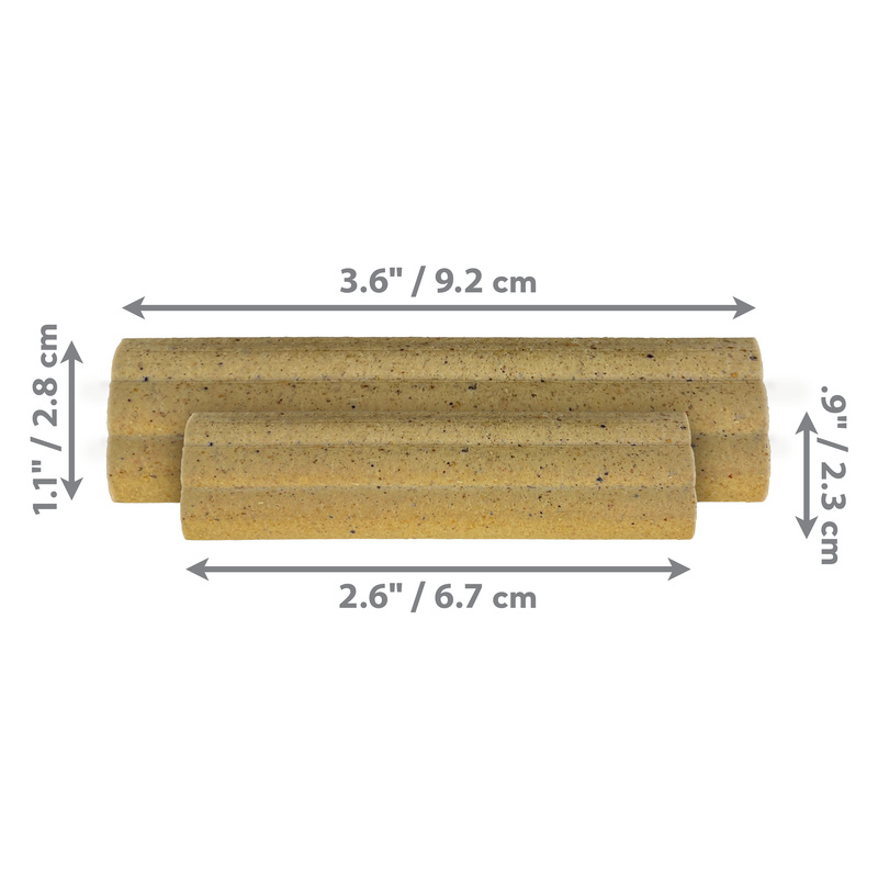 KONG Ziggies Puppy are naturally delicious chews. Perfect for supporting oral health and teething from the start. Our plant-based formula contains seaweed and is enriched with DHA, a form of Omega-3 fatty acids that supports healthy brain development. Ziggies Puppy’s softer texture is easy on the tummy and designed to massage puppy teeth and gums for teething relief, while helping to remove plaque and promoting fresh puppy breath through the mechanical action of chewing. Naturally delicious ingredients give this treat an irresistible flavor puppies love without added wheat, corn or soy. KONG Ziggies Puppy chews are ideal given as a treat and for stuffing inside KONG Puppy rubber toys for a fun way to extend daily dental care.