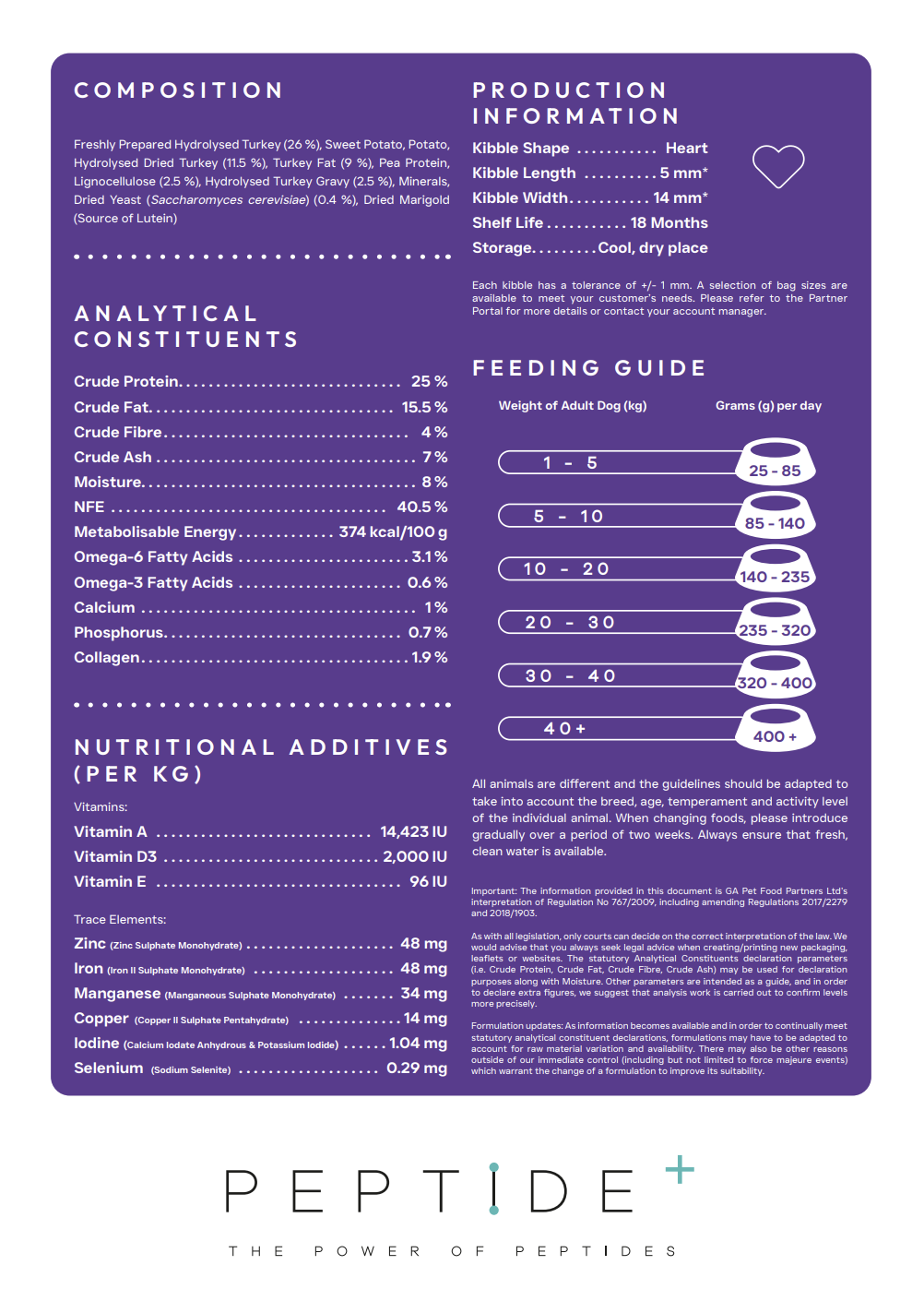 Hydrolysed Dried Turkey (11.5 %), Turkey Fat (9 %), Pea Protein,