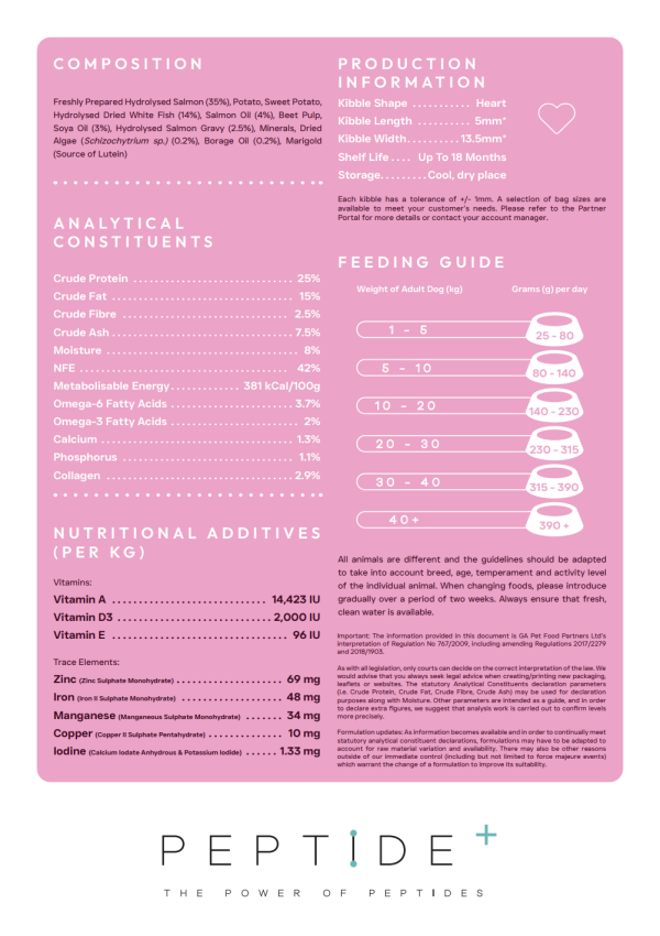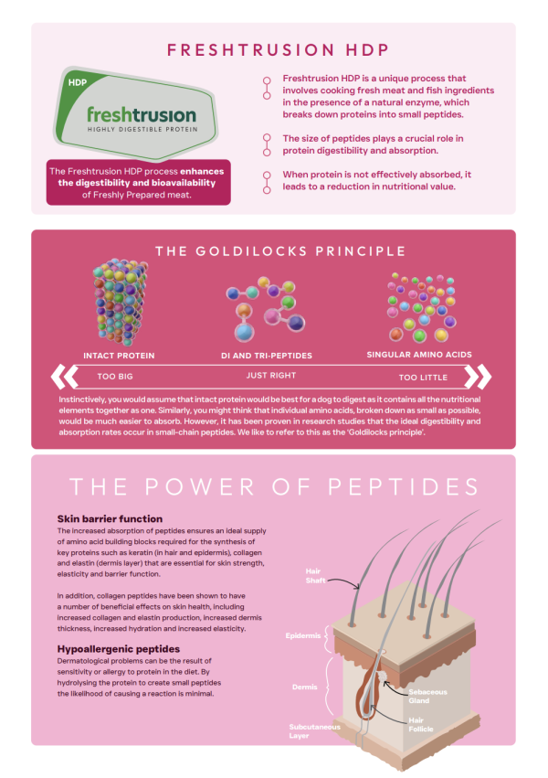 Freshly Prepared Hydrolysed Salmon (35%), Potato, Sweet Potato,