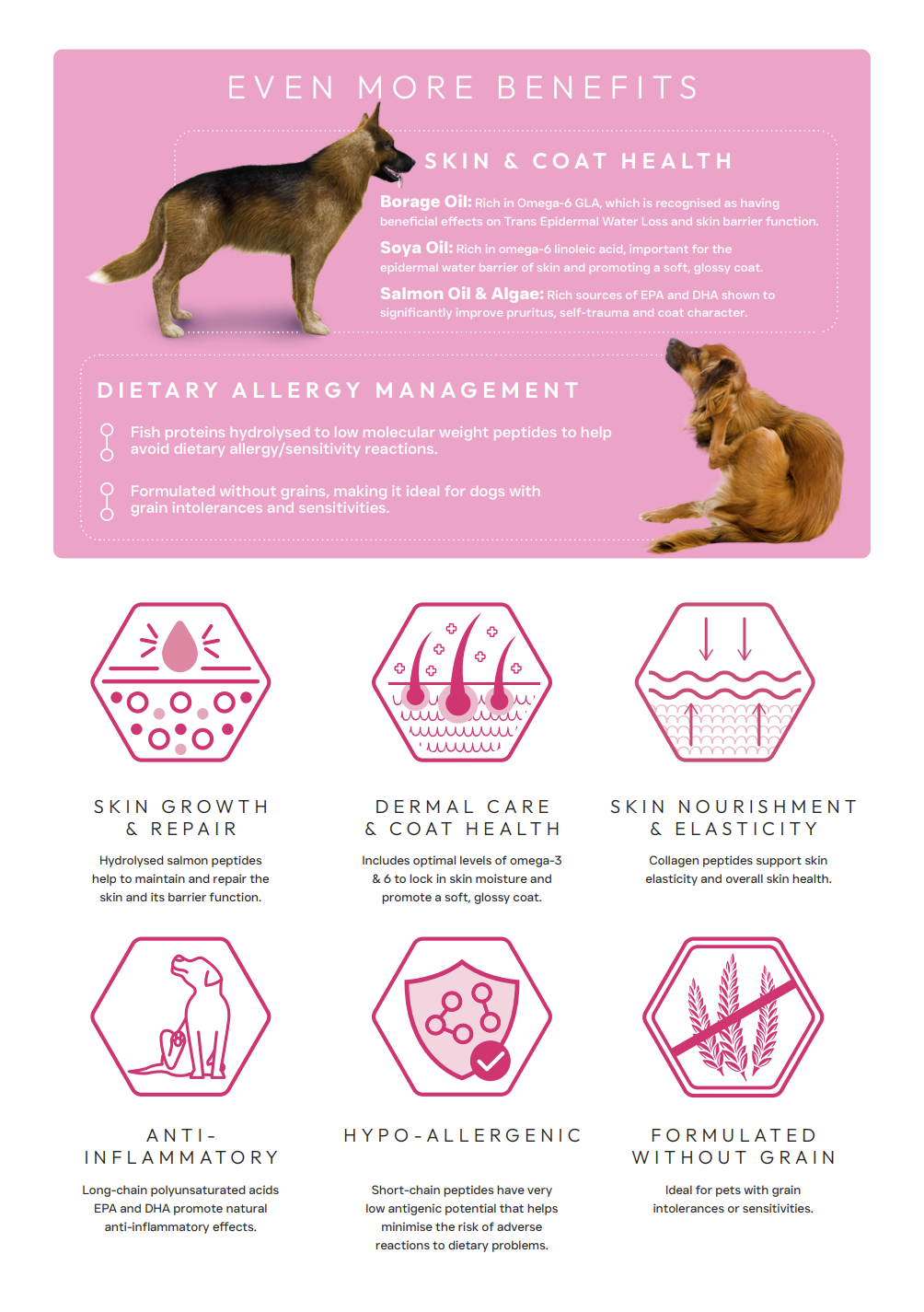 Freshly Prepared Hydrolysed Salmon (35%), Potato, Sweet Potato,