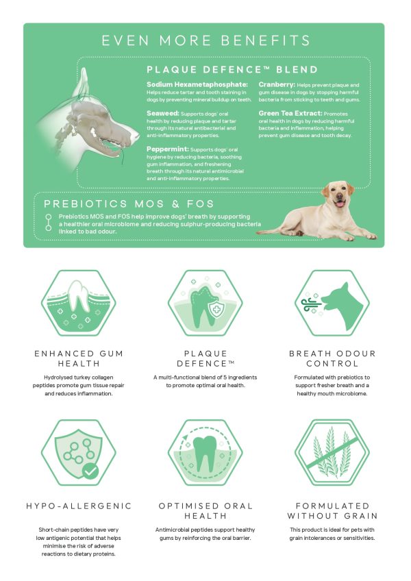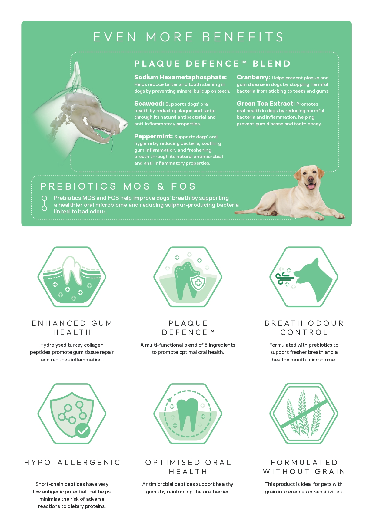 Cellulose (2.5%), Hydrolysed Turkey Gravy (2%), Plaque Defence™