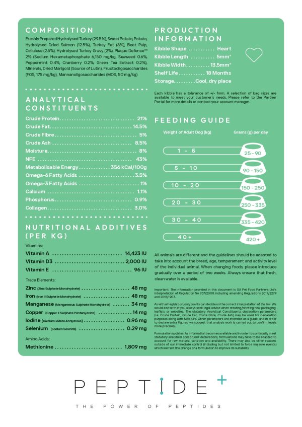 Freshly Prepared Hydrolysed Turkey (29.5%), Sweet Potato, Potato,