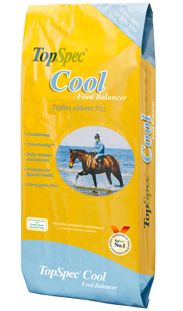 TopSpec Cool Feed Balancer has been designed for horses and ponies in light to medium work. It is a moderately conditioning, ‘Non-Heating’ feed balancer.