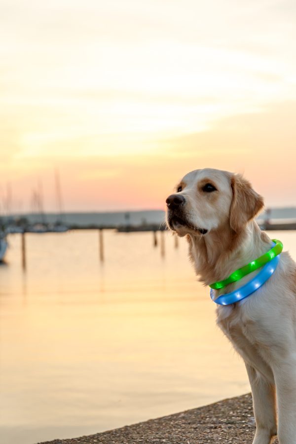 Whether you’re walking near roads, through woodland trails, or in open fields, this glowing collar provides the added peace of mind you and your dog deserve.